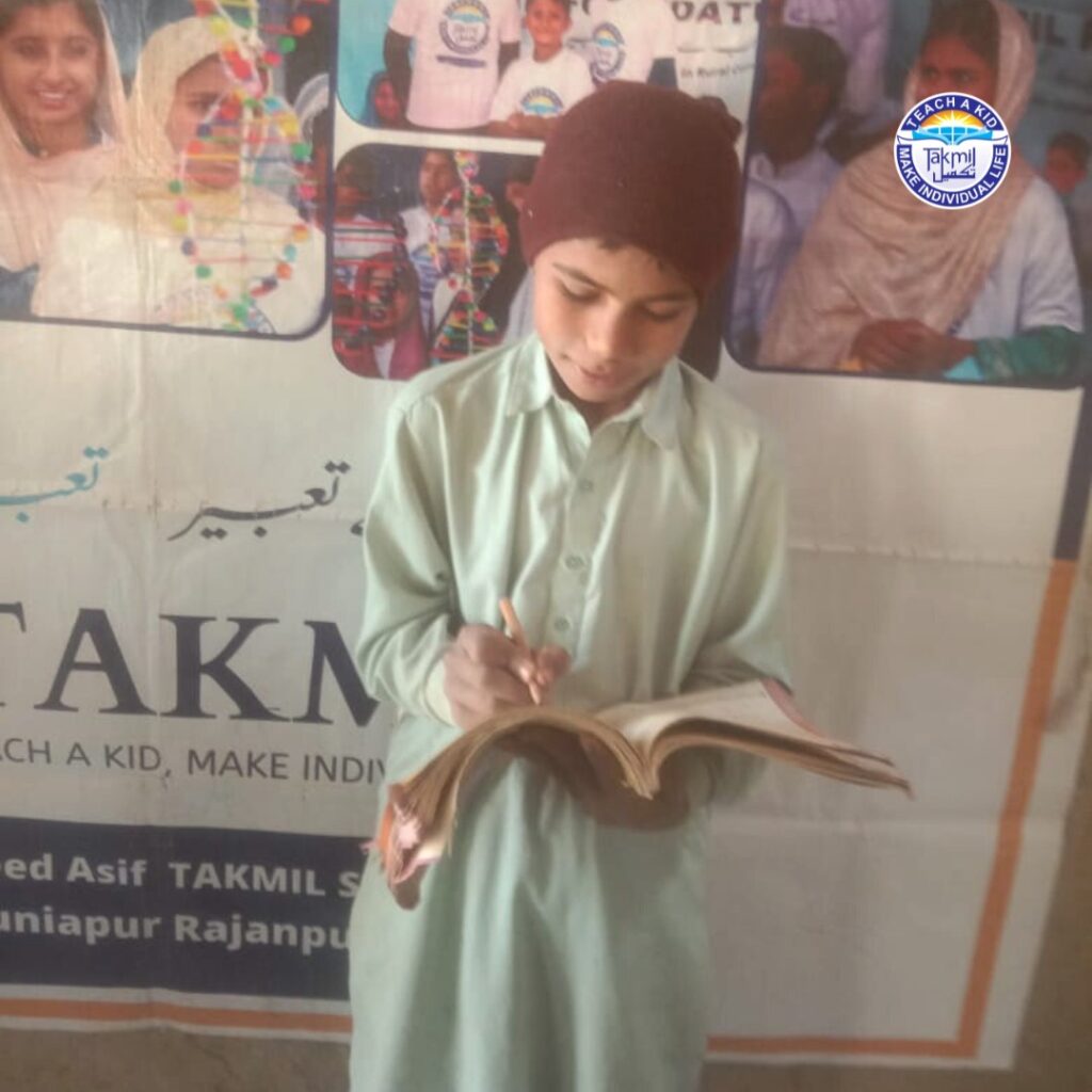In the remote village of Basti Duniapur, Rajanpur, where opportunities are scarce and life is a daily struggle, Muhammad Shazaib’s story shines as a beacon of resilience and hope. Shazaib, an 8-year-old student at Shaheed Asif TAKMIL School, joined the school on December 11, 2023. His father, Muhammad Ilyas, is a hardworking farmer, striving to […]